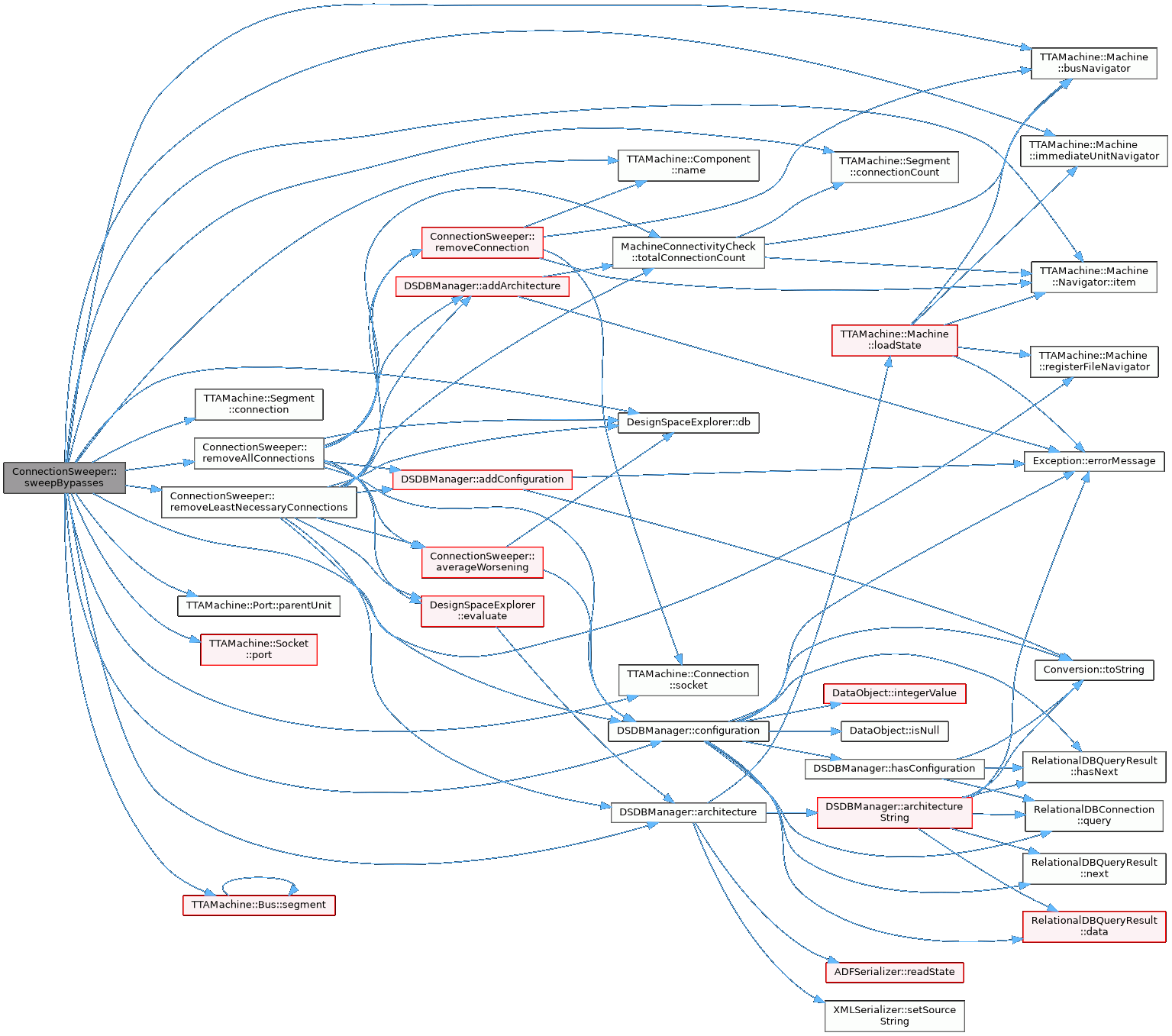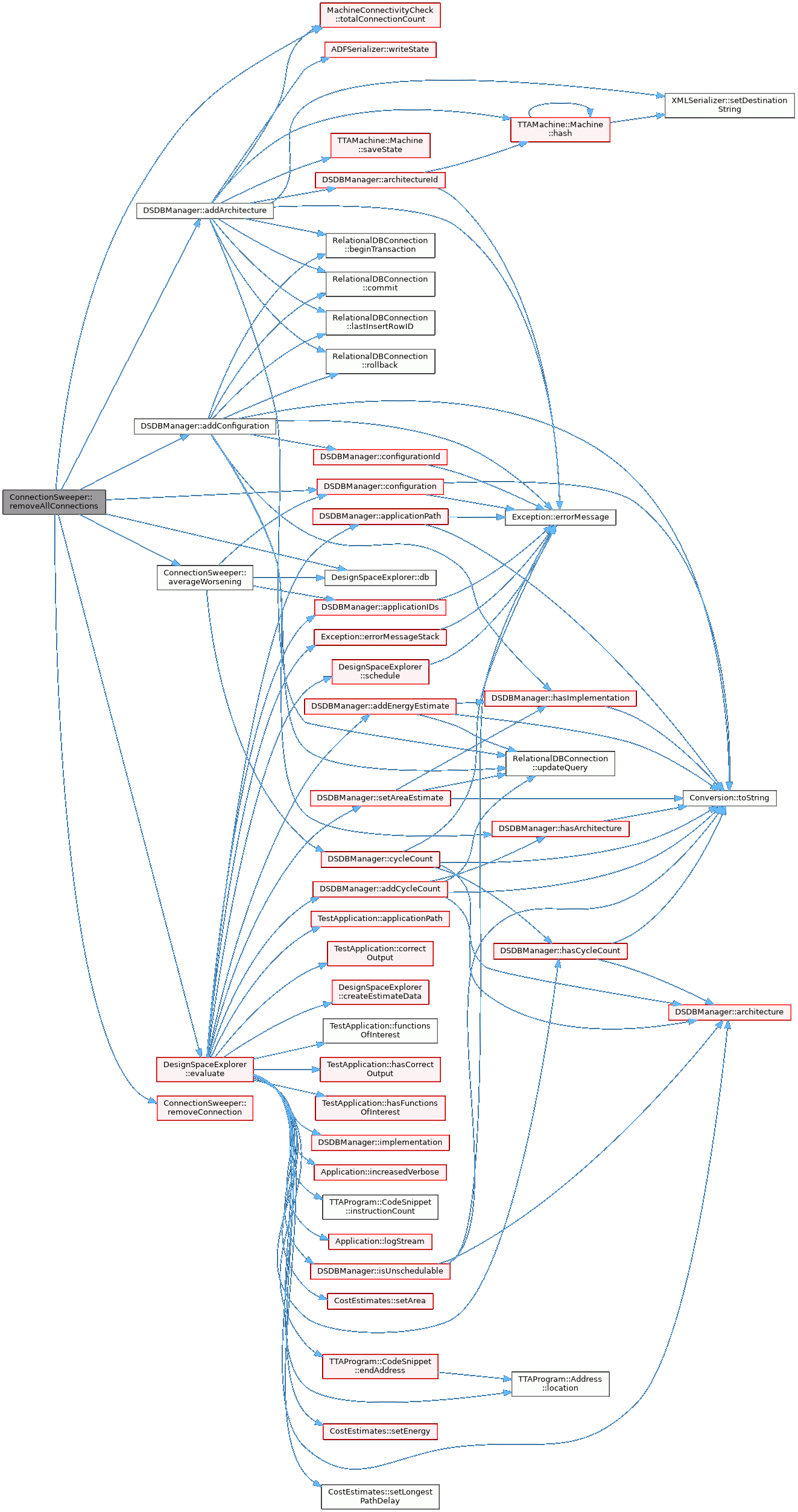References allOrNothing_, DSDBManager::architecture(), DSDBManager::MachineConfiguration::architectureID, TTAMachine::Machine::busNavigator(), DSDBManager::configuration(), TTAMachine::Segment::connection(), TTAMachine::Segment::connectionCount(), DesignSpaceExplorer::db(), TTAMachine::Machine::immediateUnitNavigator(), TTAMachine::Machine::Navigator< ComponentType >::item(), TTAMachine::Component::name(), TTAMachine::Port::parentUnit(), TTAMachine::Socket::port(), TTAMachine::Machine::registerFileNavigator(), removeAllConnections(), removeLeastNecessaryConnections(), TTAMachine::Bus::segment(), TTAMachine::Connection::socket(), and verboseLog.