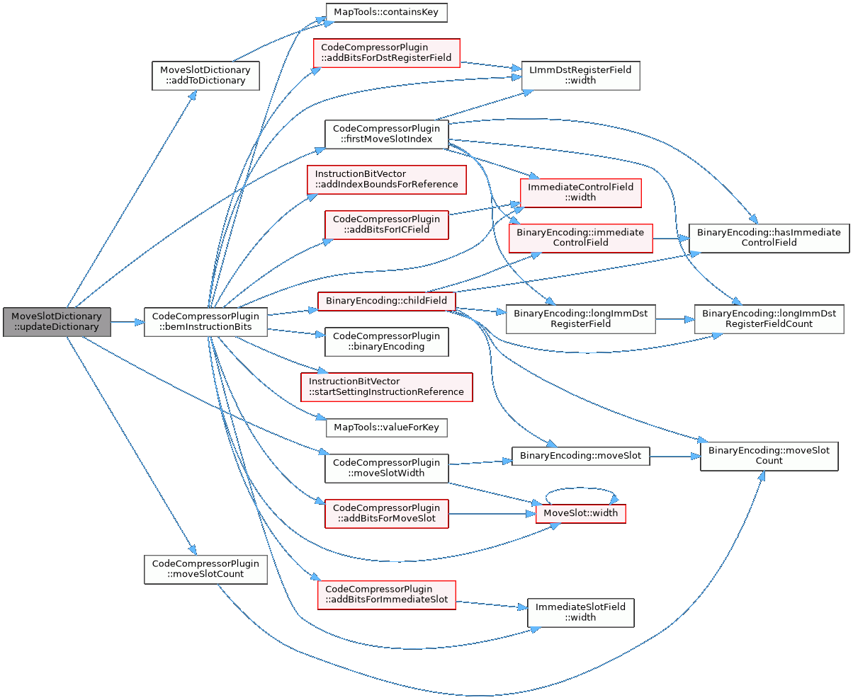 References addInstructions(), compressedWidth_, createDictionary(), dictionary_, dictionaryCreated_, CodeCompressorPlugin::firstMoveSlotIndex(), printDetails(), CodeCompressorPlugin::programBits(), MathTools::requiredBits(), CodeCompressorPlugin::setAllInstructionsToStartAtBeginningOfMAU(), CodeCompressorPlugin::setImemWidth(), CodeCompressorPlugin::startNewProgram(), and Application::verboseLevel().