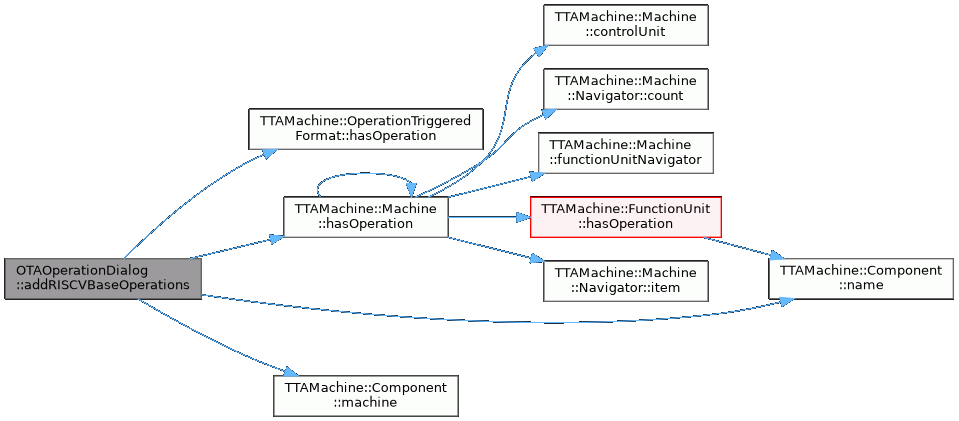 References addRISCVBaseOperations(), MapTools::containsValue(), TTAMachine::Machine::Navigator< ComponentType >::count(), format_, TTAMachine::Machine::functionUnitNavigator(), TTAMachine::OperationTriggeredFormat::hasOperation(), TTAMachine::Machine::Navigator< ComponentType >::item(), TCEString::lower(), TTAMachine::Component::machine(), TTAMachine::HWOperation::name(), TTAMachine::Component::name(), TTAMachine::HWOperation::numberOfInputs(), numberOfInputs(), TTAMachine::HWOperation::numberOfOutputs(), numberOfOutputs(), TTAMachine::FunctionUnit::operation(), TTAMachine::FunctionUnit::operationCount(), operationList_, opNameFilter_, RISCVFields::RISCV_R1_TYPE_NAME, RISCVFields::RISCV_R1R_TYPE_NAME, RISCVFields::RISCV_R3R_TYPE_NAME, RISCVFields::RISCV_R_TYPE_NAME, RISCVFields::RISCVOperationNameTable, and WxConversion::toWxString().