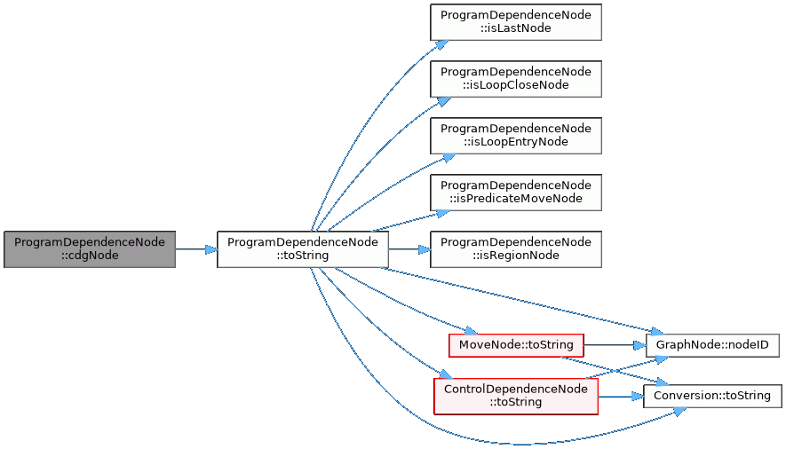 References cdgNode_, isLastNode(), isLoopCloseNode(), isLoopEntryNode(), isPredicateMoveNode(), isRegionNode(), mNode_, GraphNode::nodeID(), ControlDependenceNode::toString(), MoveNode::toString(), and Conversion::toString().