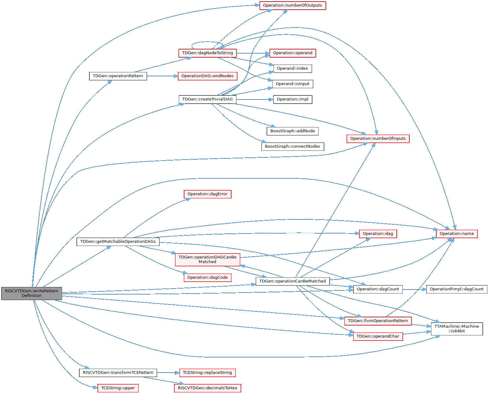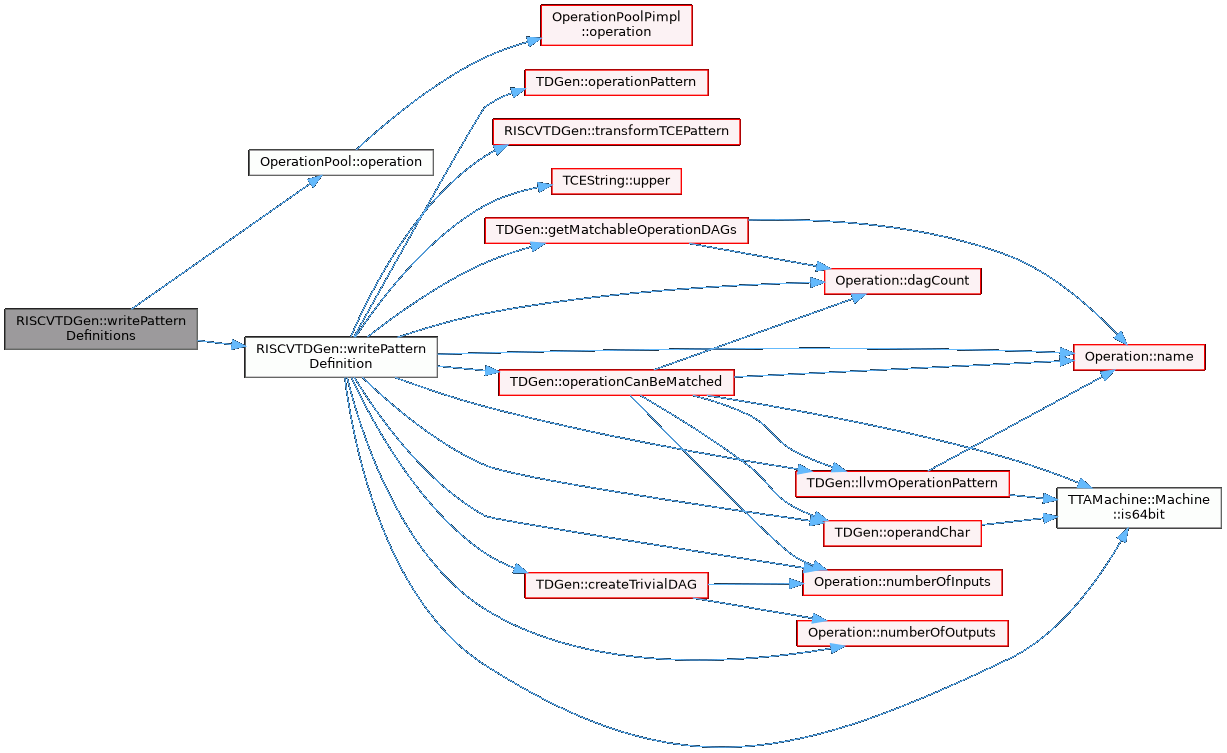 References TDGen::createTrivialDAG(), Operation::dagCount(), TDGen::getMatchableOperationDAGs(), TTAMachine::Machine::is64bit(), TDGen::llvmOperationPattern(), TDGen::mach_, Operation::name(), Operation::numberOfInputs(), Operation::numberOfOutputs(), TDGen::operandChar(), TDGen::operationCanBeMatched(), TDGen::operationPattern(), TDGen::OT_REG_INT, TDGen::OT_REG_LONG, transformTCEPattern(), and TCEString::upper().