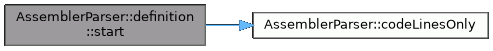 References AssemblerParser::definition< ScannerT >::codeLines, AssemblerParser::codeLinesOnly(), AssemblerParser::definition< ScannerT >::parent_, and AssemblerParser::definition< ScannerT >::program.